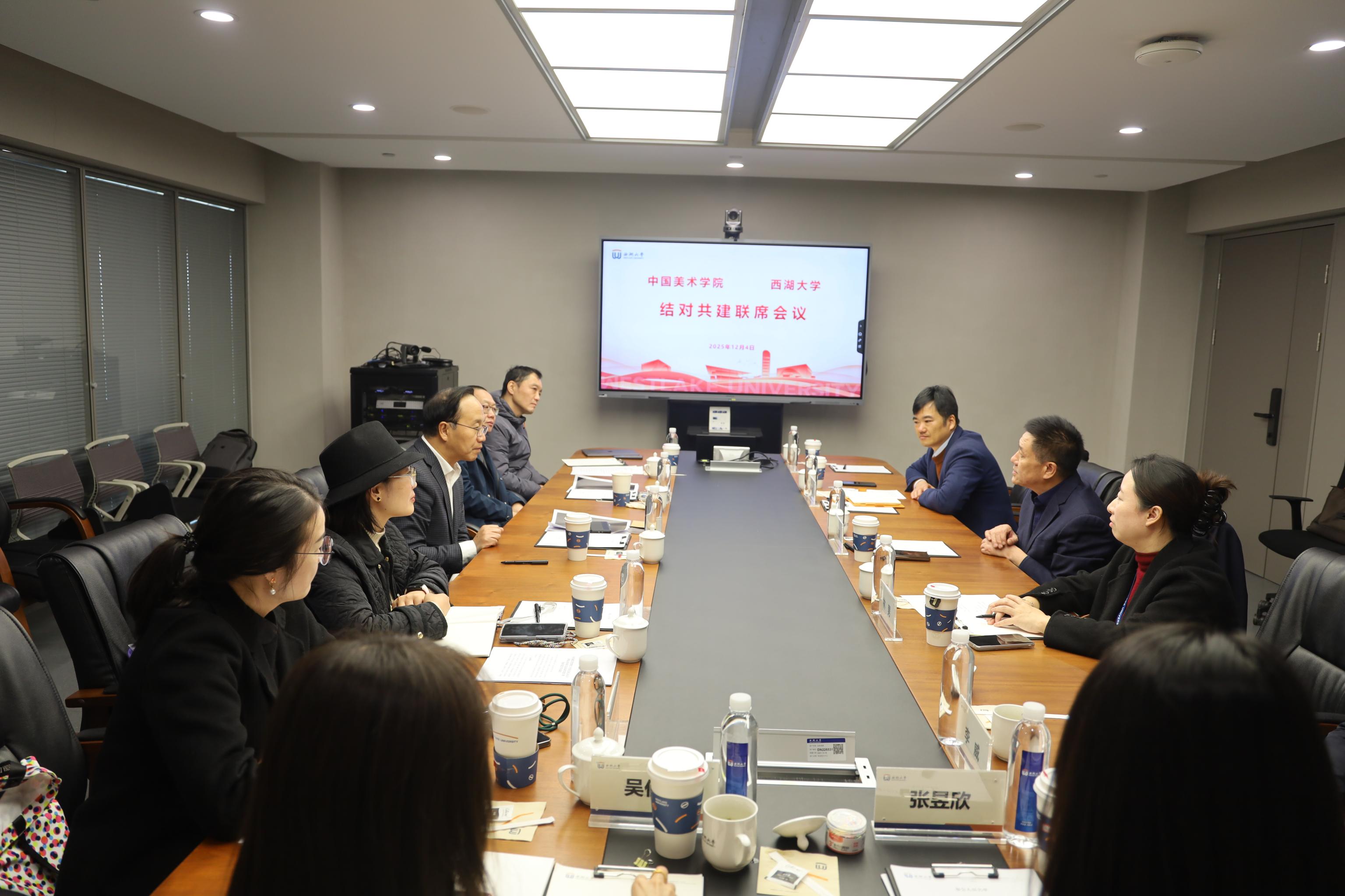 12月4日上午,西湖大学与中国美术学院党建引领全面共建联席会议在西湖大学云谷校区召开。本次会议由两校党委书记共同召集,相关党委部门负责人、结对的二级党组织书记参加。