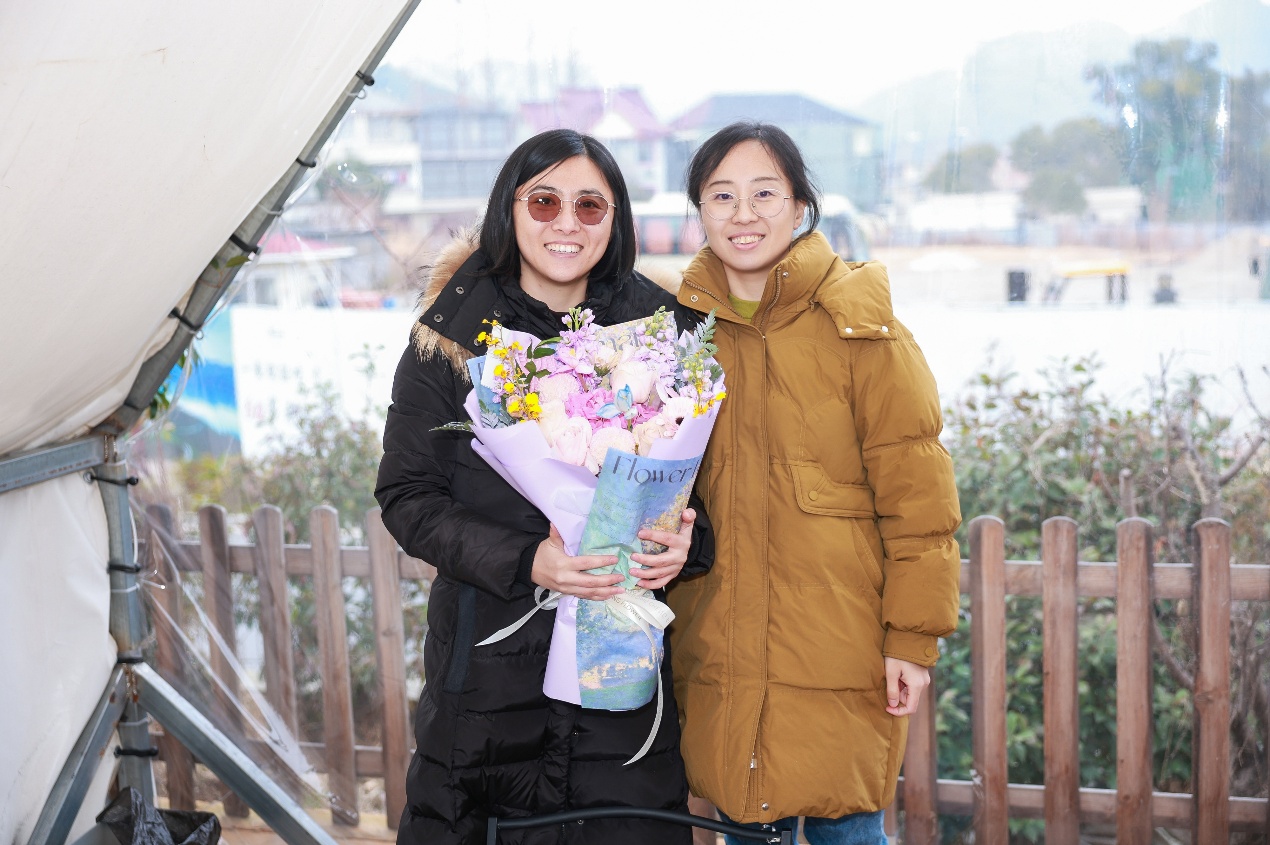 随后的营地团建环节更是温情满满。在茶园环绕的营地,新老会员围坐交流,分享科研心得与生活感悟,彼此间的理解与支持在笑语中深化。资深科学家回忆起学院女性科研环境的变化,年轻学者则畅谈未来规划。这种代际之间的真诚对话,正是学院支持女性科研发展的生动体现。随后开展的主席职务交接仪式简单而庄重,现任主席蒋敏老师接过成员们送上的美丽花束,与继任主席马丹老师亲切合影,象征着女性科研力量的传承与延续。