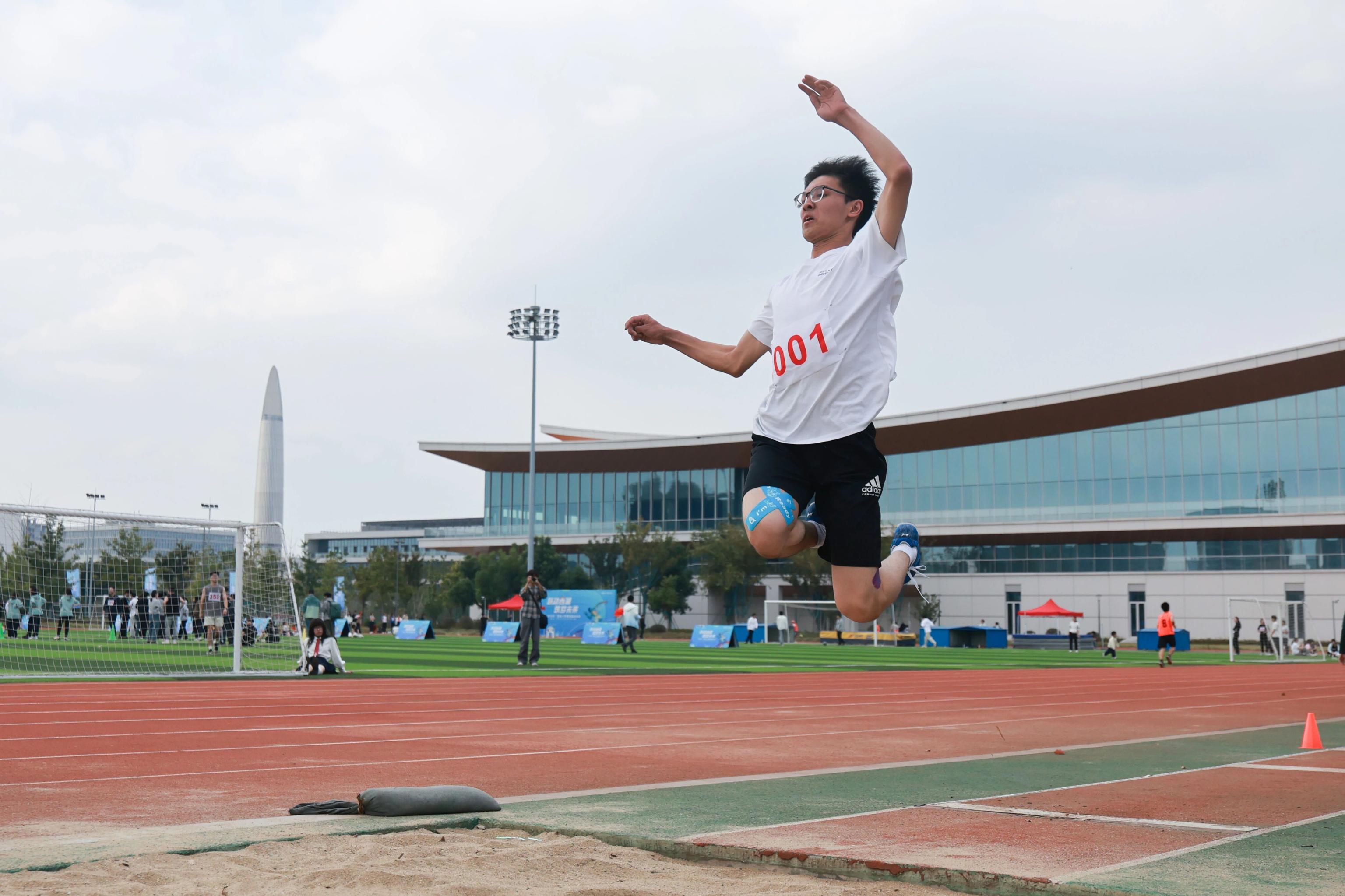 在跳远、三级跳远两项比赛中,他以“碾压式”的优势,将本科生学长朱宸怿、博士生学长俞海洋创下的纪录双双改写。
